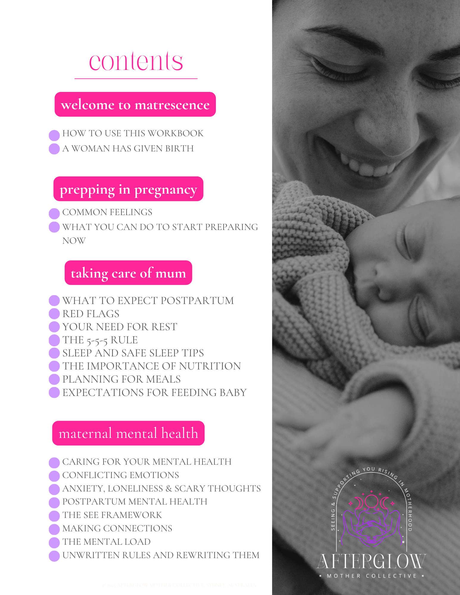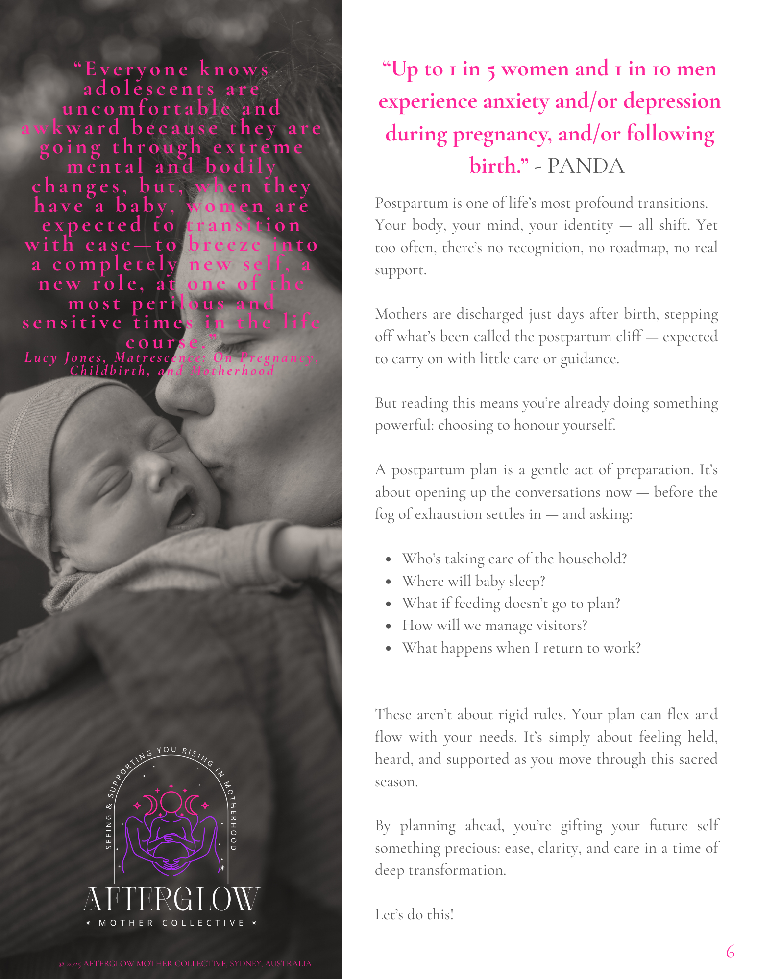 More than just a postpartum plan, this beautifully designed workbook is your companion for navigating the powerful transformation of matrescence - the physical, emotional, relational and mental shift into motherhood.